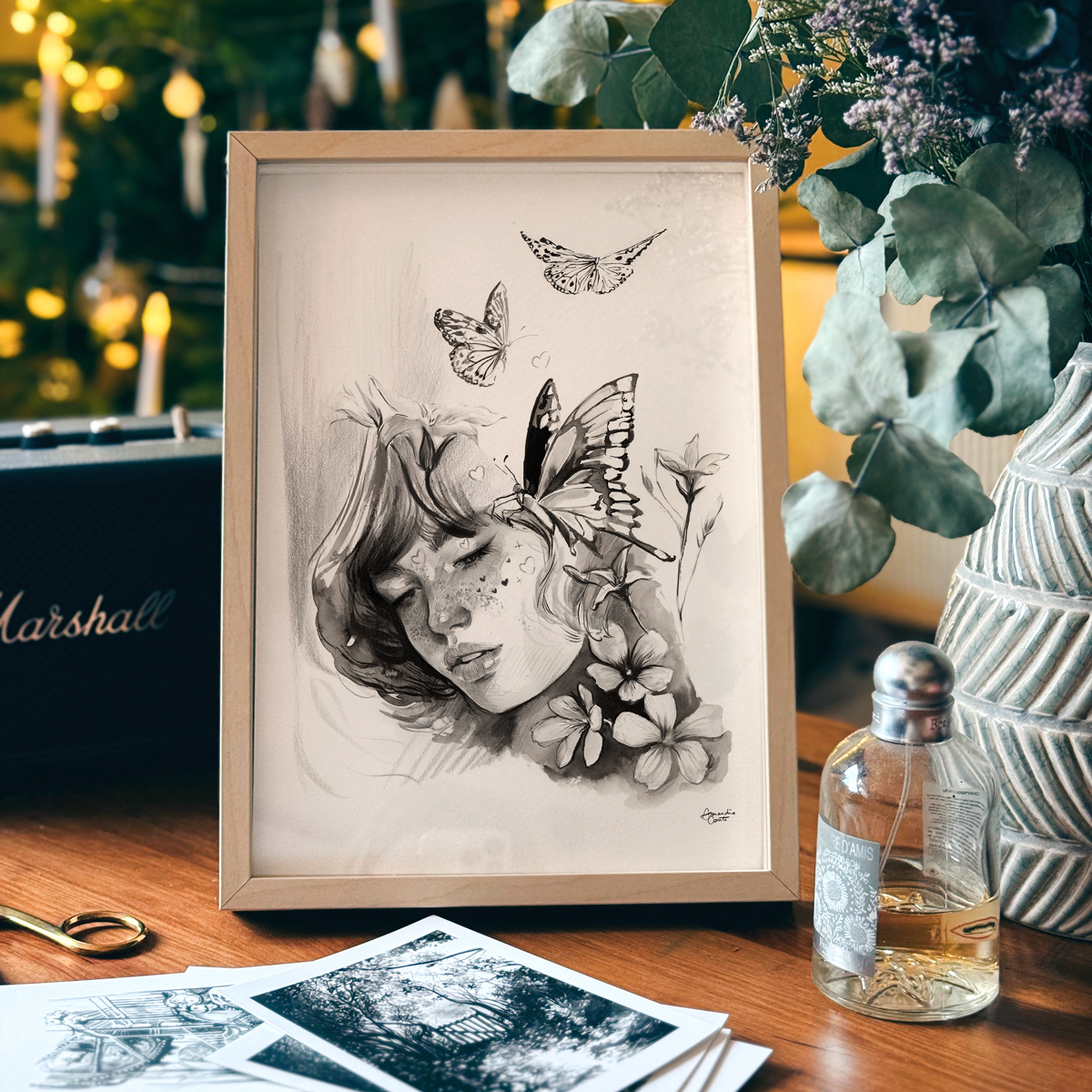 Pour le A4, elle est expédiée dans une enveloppe cartonnée. Pour le A3 et A2, elle est roulée dans du papier de soie et glissée dans un tube.