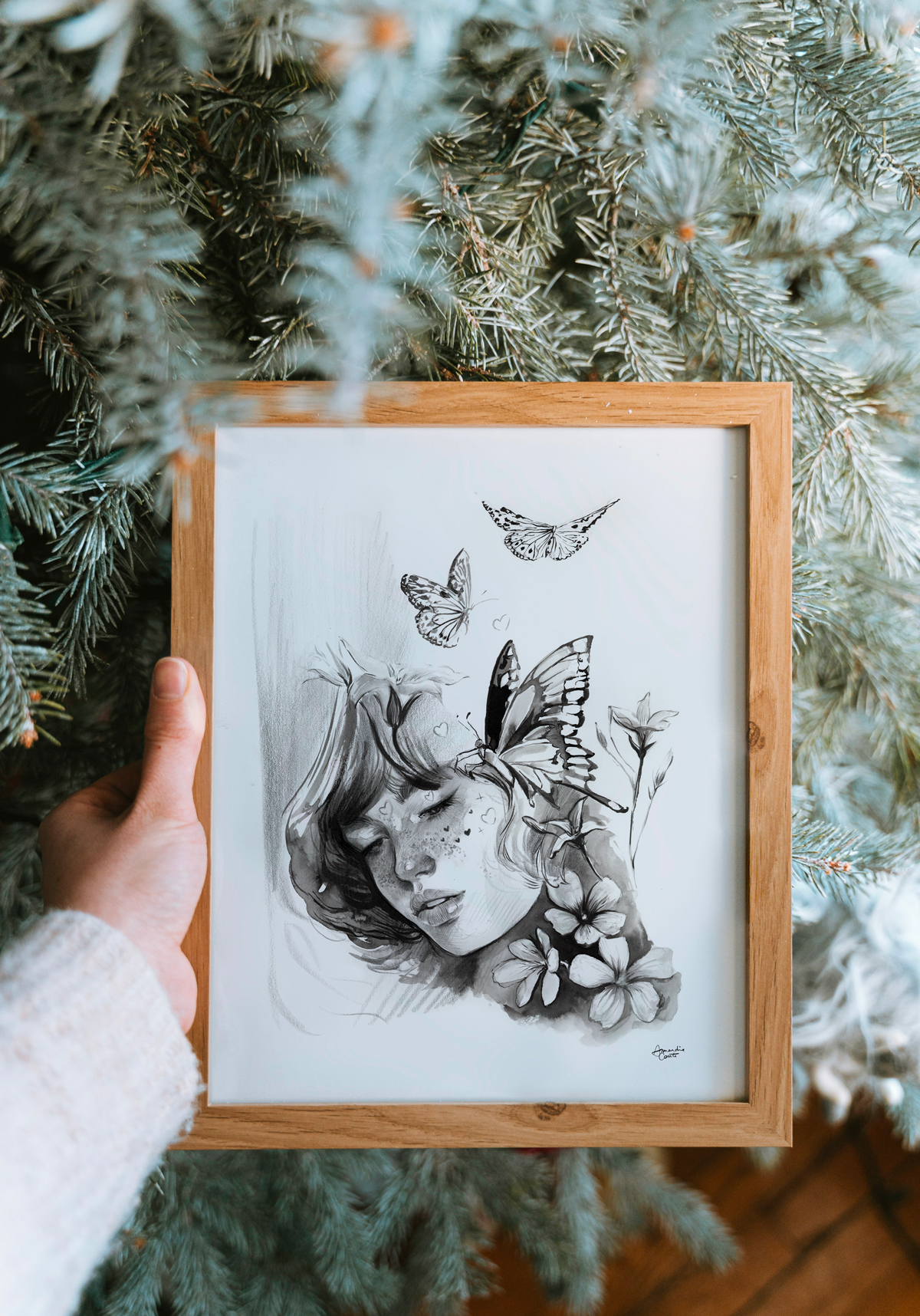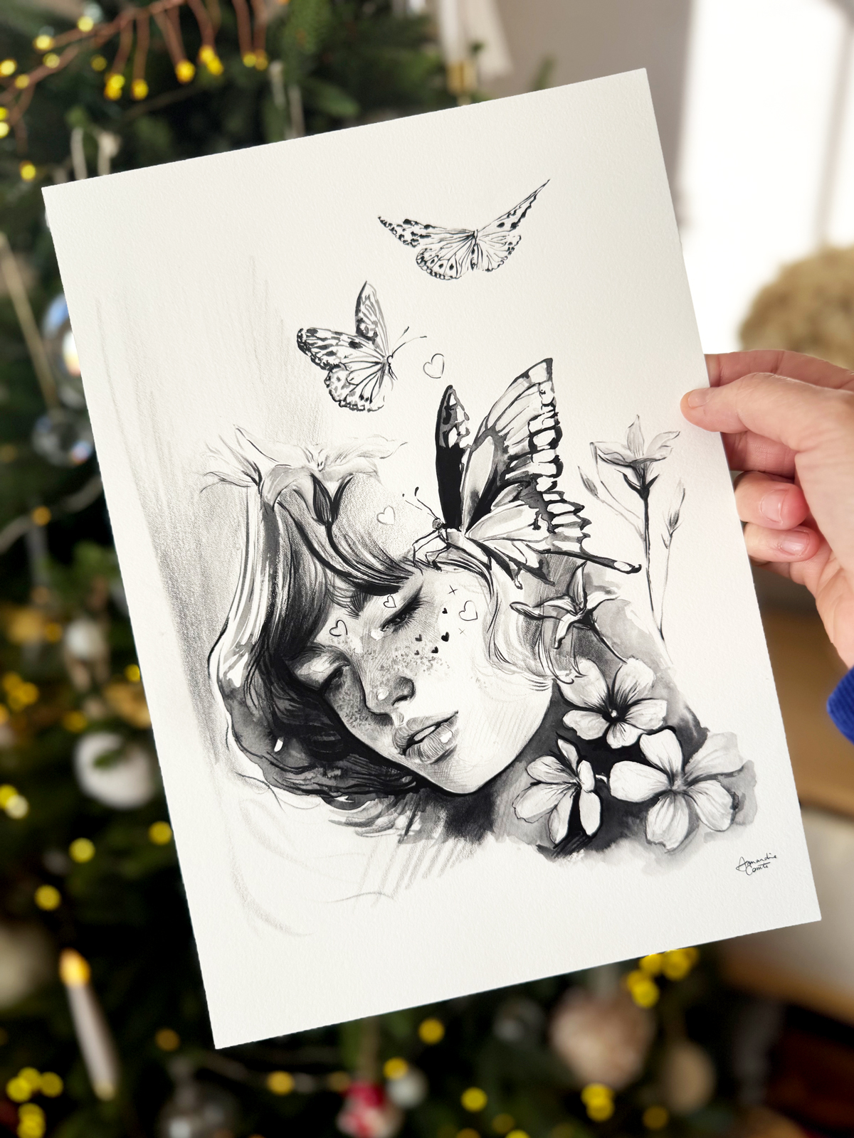 L’œuvre est livrée sans encadrement en Colissimo dans un délai de maximum 10 jours. (Le délai peut être rallongé actuellement pendant cette période de fêtes.)