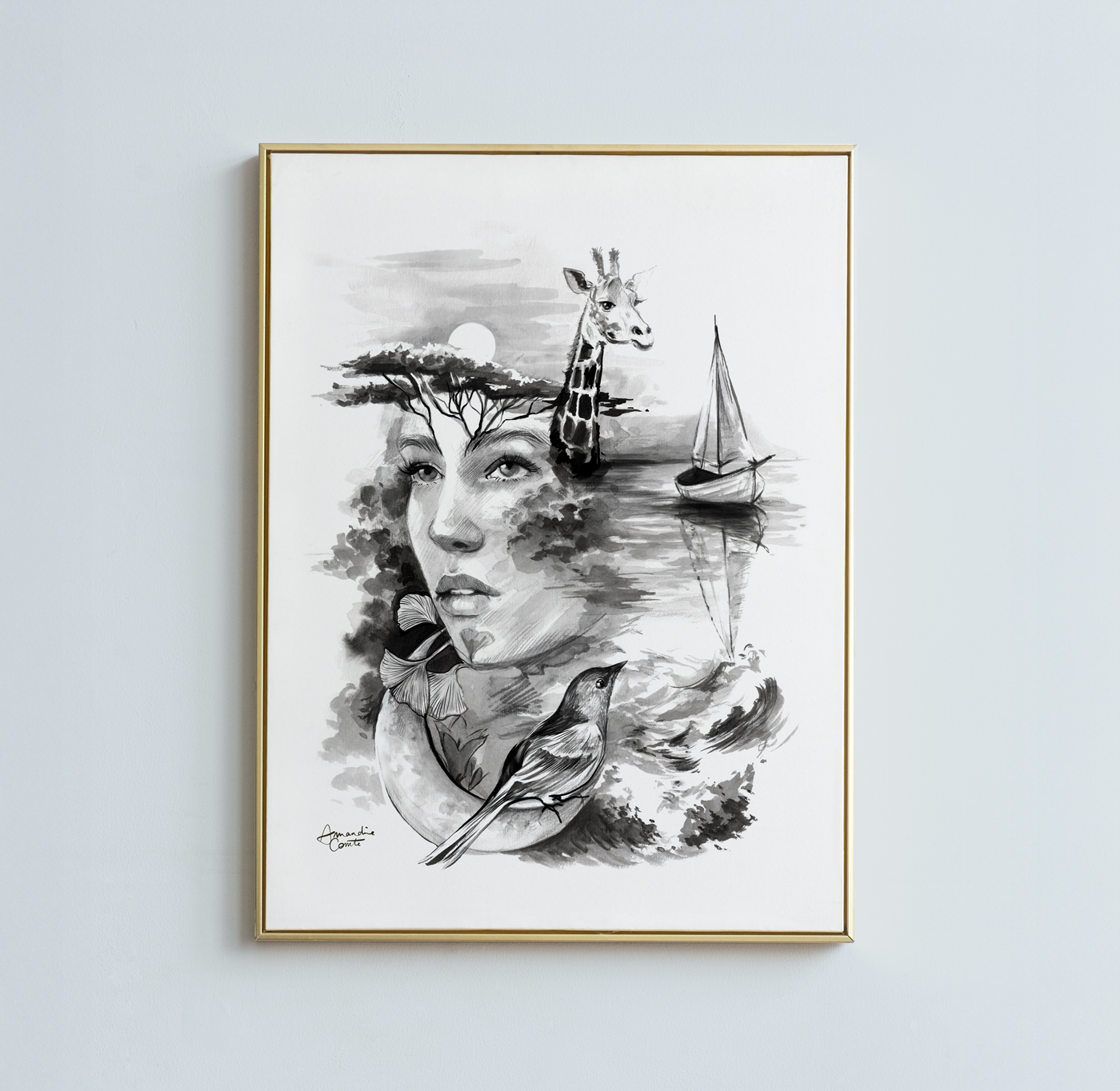 L’œuvre est livrée sans encadrement en Colissimo dans un délai de maximum 10 jours. (Le délai peut être rallongé actuellement pendant cette période de fêtes.)